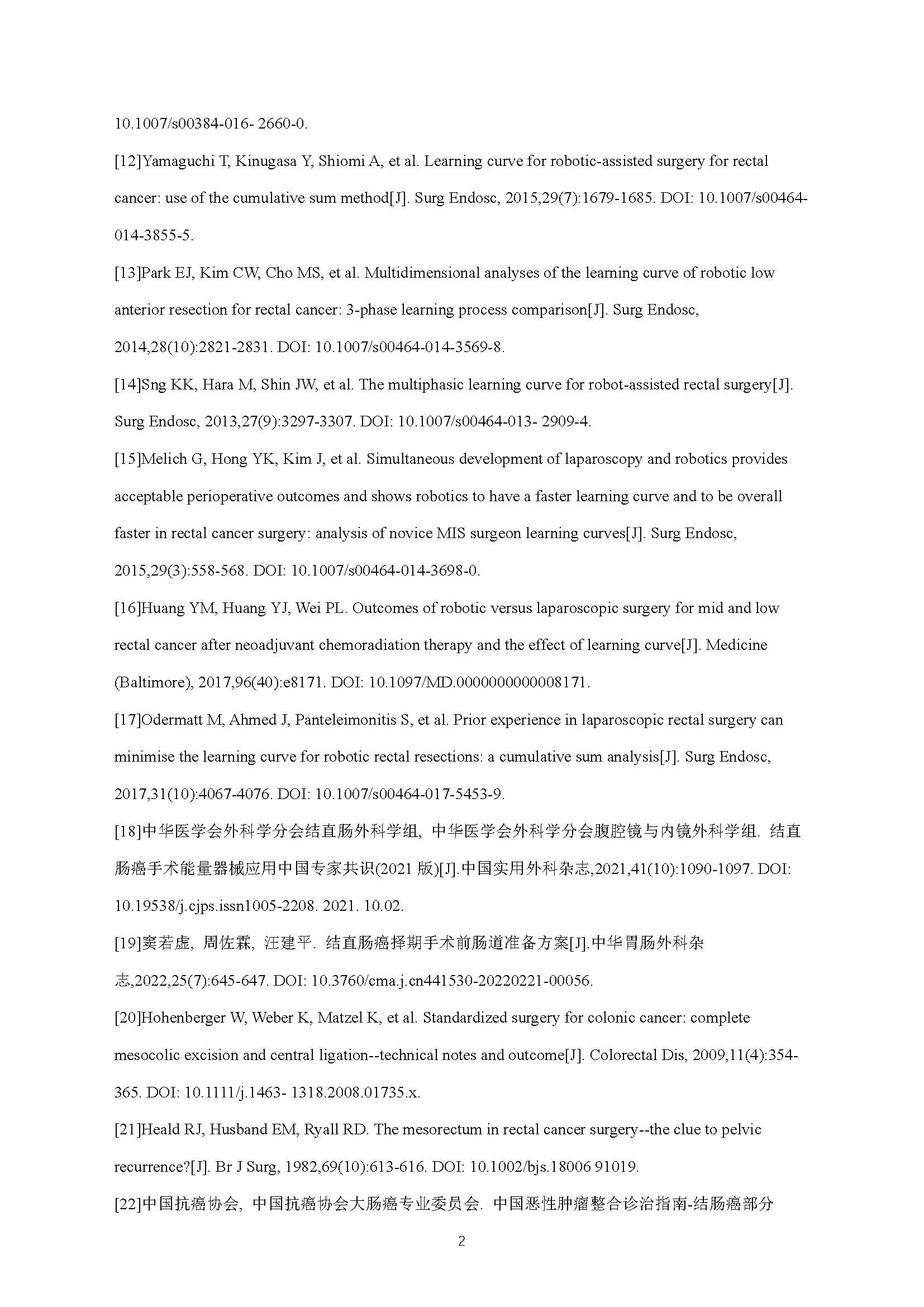 and 2020 edition of Expert Consensus on Robotic Colorectal Cancer Surgery,