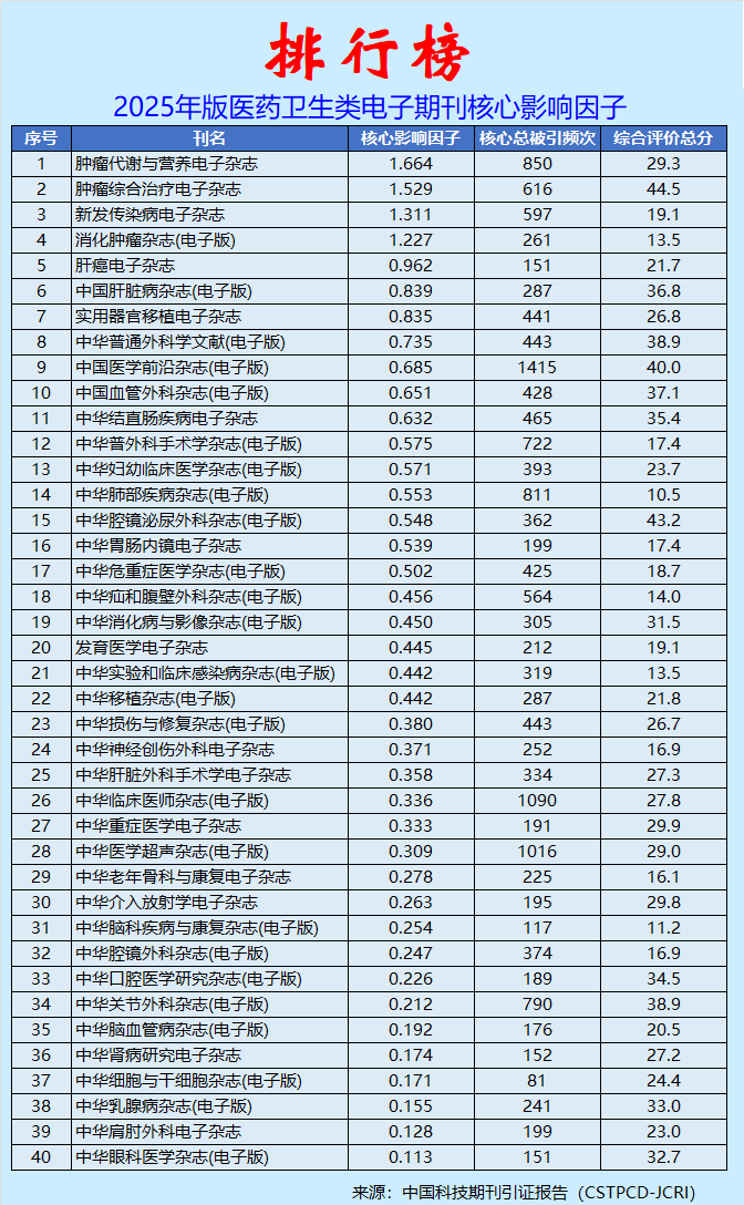 图2 2025年版医药卫生类电子期刊核心影响因子排行榜