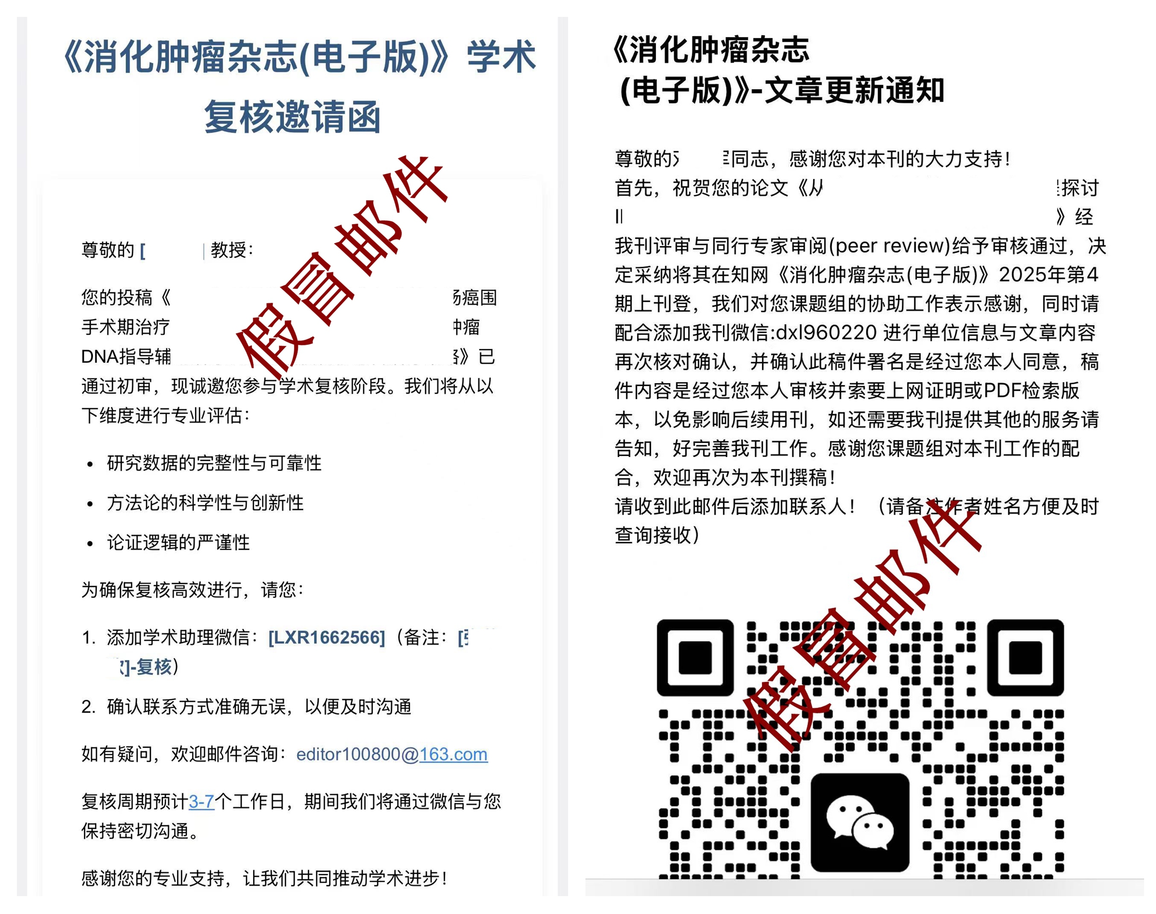 1.谎称稿件需进行学术复核;