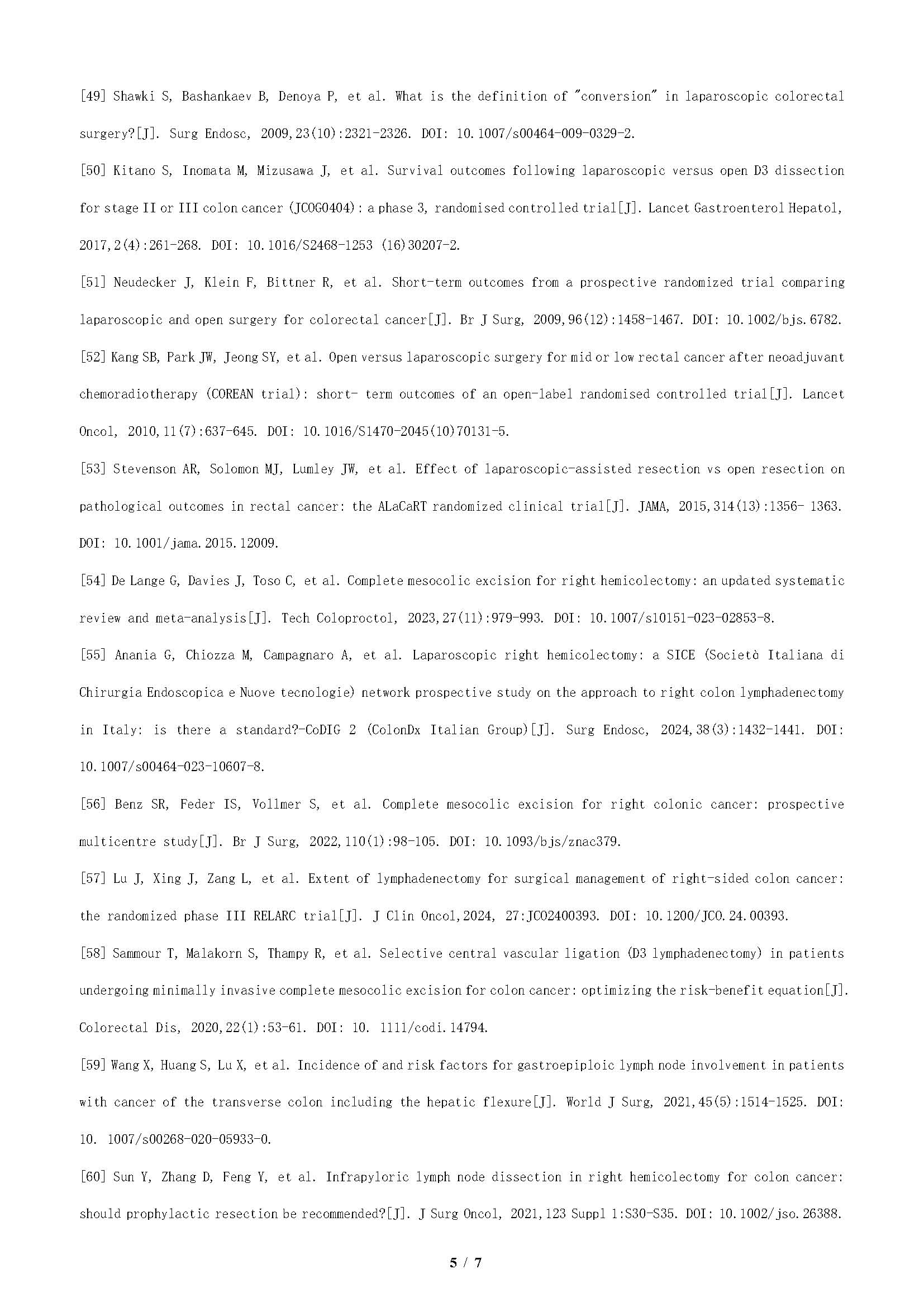 recommended as the preferred surgical approach for right-sided colon cancer; ③surgical principles: D2 lymph node dissection could be considered as