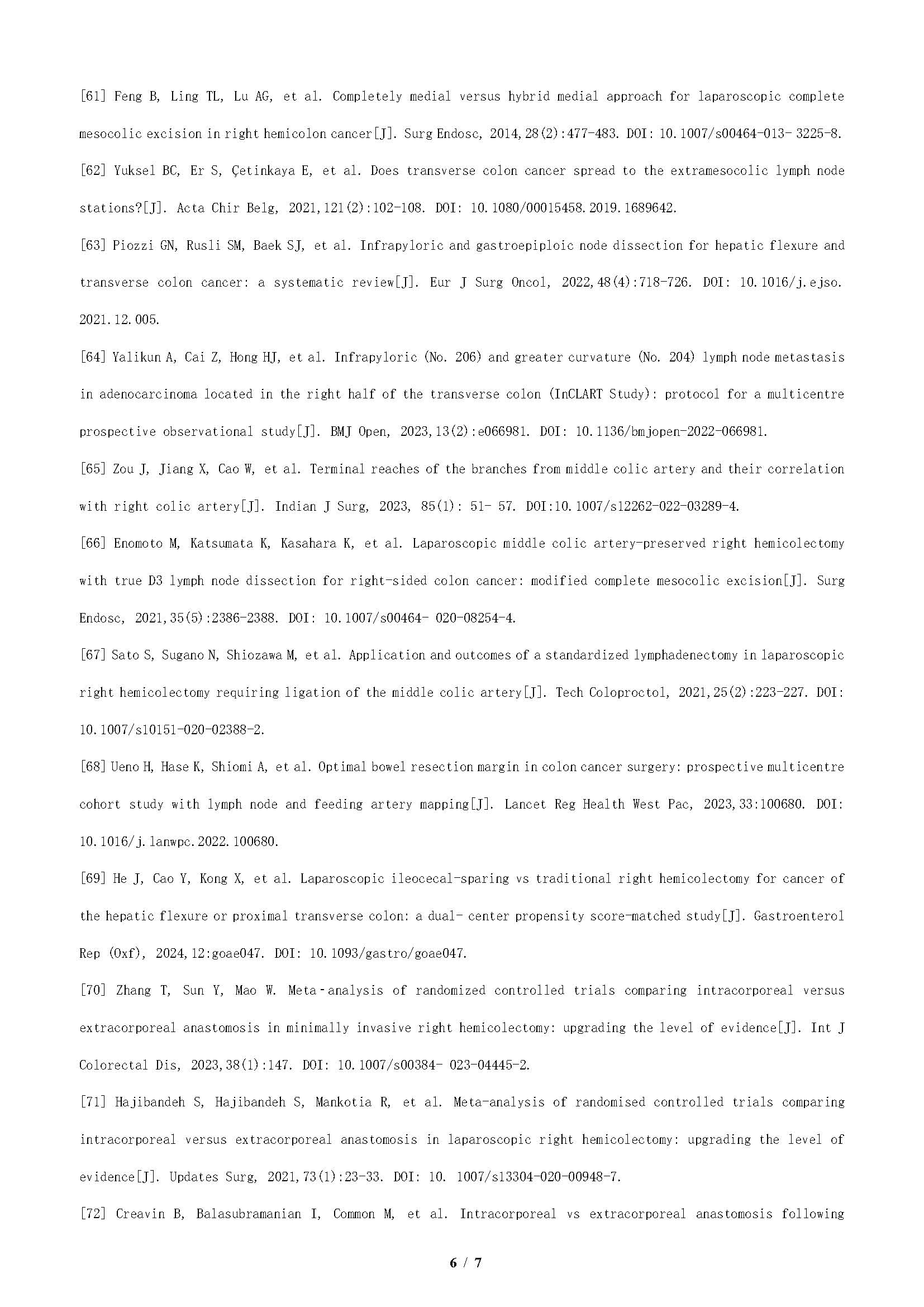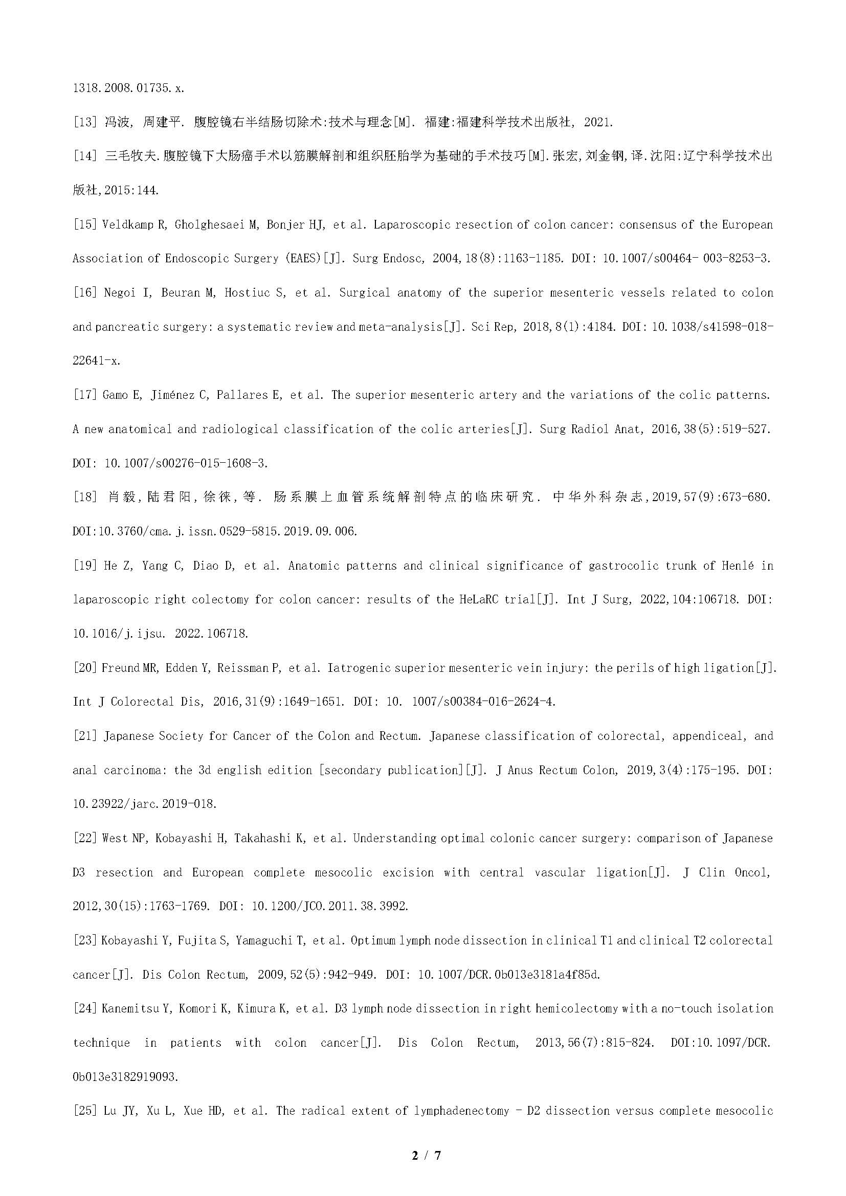关键词: 结肠肿瘤,右半结肠;手术;全结肠系膜切除