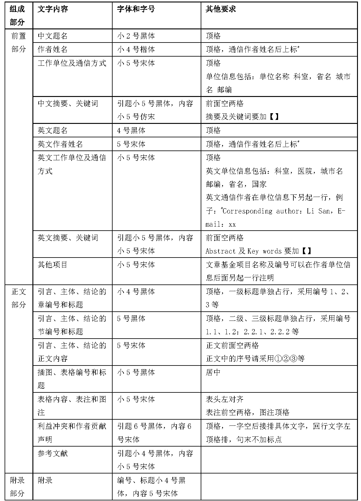 5. 正文后需著录利益冲突、作者贡献声明、人工智能使用声明。